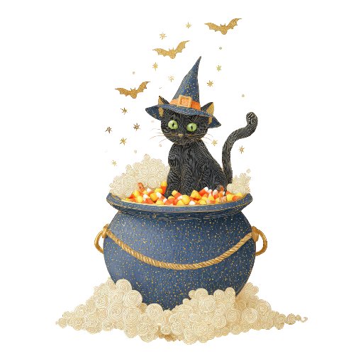 Ein bezaubernder Mäuse-Zauberer, der einen glühenden Kessel umwirbelt, während Sterne und Fledermäuse in die Nacht schwenken. Gemütliche Vintage Palette für den perfekten Halloween-Look.