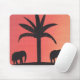 Dieses Mauspad wurde mit meiner Darstellung von zwei Elefanten und einer Palme entworfen, die von einem orangefarbenen Sonnenuntergangshimmel versilbert wurde.