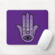 Mauspad mit violetter Hamsa-Hand, Hand der Fatima, Design von Alan Skyrme.