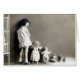 C'est notre histoire, et nous collons à elle. Carte postale vintage d'une petite fille et de ses cinq poupées toutes faisant face au mur parce qu'ils ont été mauvais.