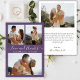 Elégant minimaliste à la main Lettered Mariage 3 Photo Collage Carte de remerciements en couleur mauve violet. Élégant modèle mariage avec trois photos sur le devant et une photo sur le dos. Avec le texte "Amour et merci" dans une calligraphie ou un script de typographie à la main cursive en couleur blanche sur arrière - plan mauve ou pourpre poussiéreux. Facile à personnaliser avec nom personnalisé et message de remerciement. Si vous préférez écrire votre note à la main, supprimez simplement l'exemple de texte pour gagner de l'espace. Si vous avez besoin d'aide ou d'un article correspondant, veuillez contacter le créateur !