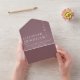 Diese minimalistische Hochzeitseinladung mit moderner Typografie auf mauvem Hintergrund. Die Einladung enthält eine perforierte RSVP-Karte mit Ihrem Hochzeitswebsite QR Code. Entwickelt von Thisisnotme©