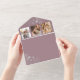 Feiern Sie Ihre Liebe mit einer Touch von Moderne Eleganz und Boho Charme mit unserer botanisch-inspirierten mauve lila All-in-One-Hochzeitseinladung! Dieses Design mit rustikalen Vintagen silbernen Blumenakzenten strahlt zeitlose Eleganz aus. Personalisieren Sie es mit vier hochgeschätzten Fotos des glücklichen Paares, die Ihre Reise wunderbar zusammen erfassen. Vereinfachen Sie RSVPs und stellen Sie zusätzliche Informationen mühelos mit unserer enthaltenen Website und QR-Code zur Verfügung. Lass deine Liebe mit dieser perfekten Fusion moderner Botanicals, Vintagem Flair und böhmischem Reiz.