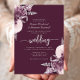 Diese elegante Hochzeitseinladung besticht durch mauve Blumenbouquets mit silberfarbenem Imitat-Foliengärten in zwei Ecken, auf einem lila Hintergrund in Mauve. Der anpassbare Text kombiniert silbergraue Serif-, kursiv- und handgeschriebene Schriftart. Das Blumendesign wird auf der Rückseite wiederholt.
