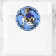 Dekorieren Sie Ihre Umschläge, Geschenkpakete & mehr mit IconDoEs ist eine originelle Variante eines klassischen Maxfield Parrish Elf-Charakters aus den 20er Jahren mit weißen und schwarzen Polka-Punkten Leggings + Kobalt blauer Pancho + eine Menorah auf seinem Schuh, auf einem gewinkelten Hintergrund und der Gruß "Happy Hanukah". Wählen Sie aus 2 Größen