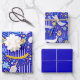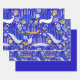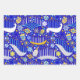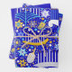 Farbenfrohe dreiköpfige, menorahs und Sterne auf einem blauen Hintergrund. Ein Blatt mit je einem Groß- und Kleindruck und ein massives Blau.