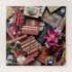Genießen Sie dieses buchhalterische und maximalistische Design mit Jugendstil-Buchstäbchen und -decken, einer Vintagen Schreibmaschine, einem Federstift, orchitischen Blume und vielen schreibbezogenen Objekten.