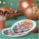 Dieses atemberaubende Geburtstagsdekor mit einer königlichen Krone in der Mitte, umgeben von spielerischen, farbenfrohen Mustern und Formen, besticht durch einen lebendigen Stil. Inspiriert durch die aufwändige Kunst des Papierschnittes, bringt dieses Design Ihrem Fest einen Hauch von kräftigen, kühnen Farben. Die Krone, mit lebhaften Akzenten geschmückt, steht im Mittelpunkt, während dynamische geometrische Formen und skurrile Muster sie in einem fröhlichen, auffälligen Rahmen umgeben. Der solide Hintergrund hebt die auffälligen Farben hervor und macht diese Dekoration zu einer perfekten Ergänzung zu jeder Geburtstagsparty.