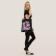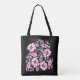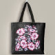 Diese Blumengrafik wird in einem Rautenmuster dargestellt, mit Haufen von Blüten, Blüten und Blätter von Blume, in gedämpften Farben, Rosa, Fuschia, Lavendel, Lilve, Grün und Weiß, vor einem Hintergrund von Schwarz.