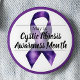 Dieser 2,25" runde Pinback-Knopf wurde entwickelt, um das Bewusstsein und die Unterstützung von Personen zu erhöhen, die von Mukoviszidose (CF) während des gesamten Mai betroffen sind, anerkannt als Cystic Fibrosis Awareness Month. In der Mitte des Knopfes wird ein lila Bewusstseinsband angezeigt, das Stärke, Widerstandskraft und Lobbyismus für Menschen mit CF symbolisiert. Das Band stellt die laufenden Bemühungen dar, Heilmittel zu finden, Behandlungen zu verbessern und Einzelpersonen und Familien zu unterstützen, die von dieser genetischen Störung betroffen sind. Oben auf der Schaltfläche werden die Worte "Mai ist" in fett gedrucktem Schriftart geschrieben, wodurch die Warnmeldung deutlich wird. Unten steht "Cystic Fibrosis Awareness Month", elegant in kursiver Schrift geschrieben und fügt eine herzliche und auffällige Touch hinzu. Ein fett lila Rahmen bildet den Rahmen der Schaltfläche, wodurch eine hohe Sichtbarkeit und Erkennung gewährleistet ist. Tragen Sie diesen Knopf, um Unterstützung zu zeigen, Bewusstsein zu verbreiten und sich für eine Zukunft einzusetzen, die frei von den Herausforderungen der Mukoviszidose ist. Gemeinsam atmen wir Hoffnung!