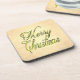 Dieses digitalisierte, grafische Foto, von Cursive Schriftart, "Frohe Weihnachten", wird auf einem glitzernden, gelb-goldenen und bronzenen Hintergrund in grün und goldfarben dargestellt.