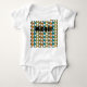 Dieser Babybodysuit hat ein modernes Design aus weißen "deformierten" Kreisen, die mit schwarzen Linien auf einem Feld aus grünen, orangen, türkisfarbenen und goldenen Streifen verbunden sind. Wenn Ihnen das Design gefällt, aber andere Farben bevorzugen, dann schreiben Sie mir.