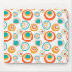 Dieses Mauspad hat ein modernes Design aus konzentrischen Kreisen in Gold, Orange und Türkis auf weißem Hintergrund.