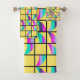 Cet ensemble de serviettes a un design moderne du milieu du siècle des lunes de croissant divisées horizontalement en trois couleurs, rose, bleu, lavande ou de mer, divisées en deux et dispersées sur une grille avec un arrière - plan jaune. Si vous aimez le design mais que vous voulez des couleurs différentes, envoyez-moi un message.