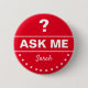 Buttons: Frag mir - frag deine Fragen ? Roter Knopf mit personalisiertem Text / Name der Person. Helpdesk Assistent, Info Point Kleidung Button.