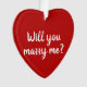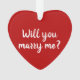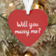 Will You Marry Me rouge et blanc nom de script personnalisé proposition coeur de Noël Ornement. Elégant joli faux or et ornement rouge pourpre. Fiançailles romantique de Noël, proposition de mariage. Un ornement double face. Idéal pour Noël ou pour les propositions de mariage pour la Saint Valentin.