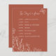 Behalt deinen Gästen mit dieser wunderschön gestalteten Wedding Timeline Card die Informationen und den Tag reibungslos. Diese Karte eignet sich ideal, um in Ihre Hochzeitsempfangstaschen, Einladungen oder den Tag der Beschilderung einzufügen. Sie Kontur die wichtigsten Momente Ihres großen Tages in einem klaren und stilvollen Format. Diese Karte mit individuellem Layout eignet sich ideal für elegante, rustikale, bohobolde, garten oder moderne Hochzeiten. Ob Sie ein komplettes Veranstaltungswochenende planen oder einfach nur gewollt sind, um die Highlights des Tages zu teilen, diese Karte fügt Ihrer Hochzeitskasse eine gepflegte Touch hinzu. Machen Sie es sich mit Ihren Hochzeitsfarben, Schriftart, Ikonen und einem Zeitplan, der Ihre einzigartige Feier widerspiegelt.
