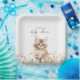 Adorable Teller mit Aquarellbildern für ein kleines Kätzchen. Personalisieren Sie sich mit dem Namen der Mutter, die zu sein hat. Entworfen für eine Babydusche mit Katzenmotiv.