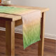 This table runner feels like the gentle melody of morning unfolding across a landscape. Soft peach and golden tones glow like the first light of sunrise, slowly blending into fresh meadow greens that carry the calm rhythm of nature waking with the day. The colors flow like a quiet song building from the hush of dawn into the brightness of morning.
