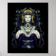 Dieses faszinierende Bild zeigt einen futuristischen Geisha, der traditionelle japanische Ästhetik mit Cyberpunk-Elementen verbindet. Die Frau ist in einem klassischen geisha kimono gekleidet, aber ihr Gesicht und ihr Körper werden durch Roboterverbesserungen, einschließlich leuchtender grüner Schaltkreise und mechanischer Teile, verstärkt. Ihre Augen sind geschlossen, ihre Hände sind mit scharfen, bemalten Nägeln überdehnt, was ein Gefühl von Schönheit und Bedrohung schafft. Der Hintergrund zeichnet sich durch ein rundes, kompaktes Design mit Zahnrädern und Zahnrädern aus, das den technologischen Aspekt des Bildes noch weiter unterstreicht.