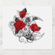 Kontur, halbmondmondförmig mit Gängen, mit rote Rosen mit schwarzen Stielen und Blätter auf weißem Hintergrund dekoriert. Steampunk