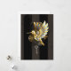 Steampunk, antiker, goldener, mechanischer Kolibri mit Messinggetrieben und silberner Taste auf gestreiftem, braunem Hintergrund. Goldvogel.