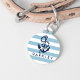 Pamper votre animal ! Le design présente une illustration de corde et d'ancrage en bleu marine classique sur un arrière - plan rayé bleu clair et blanc. Customisez avec le nom de votre animal sur l'avant et les coordonnées sur l'arrière. Coordonner les accessoires disponibles dans notre boutique, y compris les bols et les lits d'animaux !