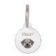Une étiquette de chien mignonne avec une illustration plate de carlin brun. Personnalisez-le avec le nom de votre chien.