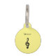 Balise d'identification musicale avec une clef noire triable sur un arrière - plan jaune pâle. Avec le lettrage noir, vous pouvez ajouter le nom de votre animal de compagnie et vos informations à l'arrière. Une jolie façon d'ajouter un peu de musique classique au collier de votre animal !