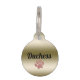 Empreinte de patte et faux or personnalisé marque d'identification de animal - Faux or arrière - plan métallique. Nom de l'animal de compagnie personnalisé en script noir. Trendy, en relief, faux rose or empreinte de patte en or en bas. Back a le numéro de téléphone avec le nom du propriétaire et les coordonnées personnalisées en animal de compagnie coque se perdent sur le cercle blanc facile à lire avec une bordure métallique en faux or. Note : Toutes les images sont imprimées. Pas de métal ou de feuille d'or réel.