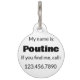Le design présente une illustration originale de poutine, un plat populaire au Québec, au Canada, et présente des frites recouvertes de cailloux de fromage et de sauce brune. Idéal pour votre gourmet préféré ! Personnalisez simplement les informations de votre animal.