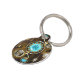 Turquoise lenses with antique watch with brass gears and golden keys on rusty, brown background. Steampunk style.
