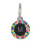 Un motif lumineux, heureux et coloré des triangles d'arc-en-ciel se tient sur cette étiquette de collier d'animal familier. Customisez le monogramme blanc moderne des textes avec votre initiale de nom de famille ou de nom d'animal familier sur l'avant et le dos. Personnalisez le dos avec la votre information de contact, nom et numéro de téléphone ainsi votre animal familier trouvera toujours leur chemin de la maison s'ils sortent.