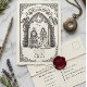 Embark on a fairytale journey with this enchanting medieval-themed 'Save the Date' card. Featuring a noble knight and his bride standing before a gothic archway, flanked by majestic dragons and a mystical unicorn, this design evokes a sense of timeless romance and adventure. The intricate hand-drawn style, reminiscent of ancient scrolls and tapestries, makes it a unique choice for couples planning a fantasy-inspired or Renaissance-themed wedding. Announce your special day with a touch of magic and historical charm.