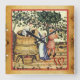 Ancient Medieval Italian miniature of vinyard harvest .Classic rural scene.Beautiful hanged red grapes,grape vines,green fall leaves.Part fr " Season's Fruits ".This classy design with old aged brown parchment effects is perfect for nutritionists,dieticians,caterers, food service,preparation or restaurant ,catering ,wine industries.