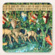 Untersetzer mit William Morris Tapestry Verdure with Deer and Shields (1891-1894). Eine grüne Hirschlandschaft, die aus einem Wasserbecken trinkt und von Blätter von Bäumen in einem grünen Wald gegessen wird. Über ihnen hängen die Schilde der Ritter des Runden Tisches. Ein großartiges Geschenk für Arthuriana-Liebhaber und Viktorianische Kunstsammler.