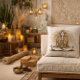 Stilvolles und ruhiges Beisammensein mit unserem Om Meditation Kissen mit einem auffallenden Design einer Frau in Gold mit fließendem langen Haar, tief in die Meditation eingetaucht. Das ruhige Bild vermittelt das Wesen der Ruhe und Achtsamkeit und macht es zu einer perfekten Ergänzung Ihrer ruhigen Dekoration.