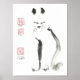 Schwarze Tinte Sumi-e, [Zen-Tintenmalerei im japanischen Stil] einer Katze, die meditiert