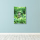 Foto einer Statue in einer meditativen Pose in einem üppigen Pflanze Garten, gedruckt auf glänzend gedehnte Leinwand. — Die Fotografie ist urheberrechtlich geschützt durch die Fotografin Christina Spiegeland.