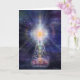 Transparenter Meditator sitzend auf Lotusbett im Raum mit farbigen Chakren und strahlendem Licht oben. von Daniel B. Holeman.