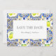 Personalisieren Sie diese Amalfi Küste mediterrane Zitronen Fliesen Save the Date Hochzeitskarte mit Ihren eigenen Worten einfach und schnell, einfach drücken Sie die Schaltfläche Anpassen, um den Stil und die Platzierung des Textes weiter zu ordnen und zu formatieren.