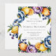 Fügen Sie Ihrem Hochzeitsquartier eine frische, romantische Touch mit diesem lebendigen, floralen Design aus Aquarell hinzu. Dieses elegante Bouquet mit handbemalten Zitronen, Orangen, Heidelbeeren und blühenden Blume in lila, rosa und blauen Farbtönen eignet sich ideal für Hochzeiten im Frühjahr oder im Sommer. Ideal für Einladungen, Dankeschön-Karten, Signage, oder maßgeschneiderte Hochzeitsgeschenke. Eine zauberhafte Mischung aus Früchten und Blumen bringt einen skurrilen, mediterran inspirierten Flair zu jeder Feier.