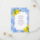 Celebrate your special day with this charming Mediterranean-style wedding design, featuring traditional Italian tiles in light blue and hand-painted watercolor lemons. Perfect for a rustic, coastal, or Amalfi-inspired wedding, this elegant design captures the charm of Southern Italy with its intricate patterns and fresh citrus touches. Fully customizable with your wedding details, this enchanting Italian design adds a touch of Tuscan romance to your celebration. Ideal for destination weddings, summer ceremonies, and Italian-themed receptions. For complementary products, please see the collection of this design.