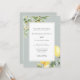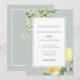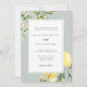 Diese elegante mediterrane inspirierte Hochzeitseinladung besticht durch Aquarellfarben-Zitronen mit eleganten grünen Blätter und einen Olivenzweig mit einer klassischen Salbei-Grenz. Ideal für eine Hochzeit im Freien oder im italienischen Garten.