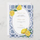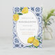 Personalisieren Sie diese Amalfi Coast Mediterrane Zitronen Fliesen Probe Dinner Einladungskarte mit Ihren eigenen Worten einfach und schnell, einfach drücken Sie die Taste anpassen, um den Stil und die Platzierung des Textes weiter zu ordnen und zu formatieren.