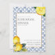 Personalisieren Sie diese Amalfi Coast Mediterrane Zitronen Fliesen Probe Dinner Einladungskarte mit Ihren eigenen Worten einfach und schnell, einfach drücken Sie die Taste anpassen, um den Stil und die Platzierung des Textes weiter zu ordnen und zu formatieren.