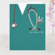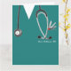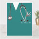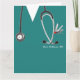 Kreative Medizin Schule Abschluss Karte mit Klinikabfällen mit einem Schweizer Armeemesser in der Hosentasche. Um eine persönliche Note zu erhalten, editieren Sie den Text, um den Namen des Arztes hinzuzufügen.