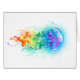Grande méduse irisée, artistiquement dessinée, brillante, avec de longues tentacules sur le blanc, peinte sur l'arrière - plan multicolore. Méduse arc-en-ciel.