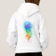 Grande méduse irisée, artistiquement dessinée, brillante, avec de longues tentacules sur le blanc, peinte sur l'arrière - plan multicolore. Méduse arc-en-ciel.