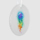Grande méduse irisée, artistiquement dessinée, brillante, avec de longues tentacules sur le blanc, peinte sur l'arrière - plan multicolore. Méduse arc-en-ciel.